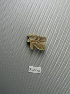 Egyptian. Wadjet-eye Amulet, 664–30 B.C.E. Faience, 7/8 x 1/4 x 1 1/8 in. (2.2 x 0.6 x 2.8 cm). Brooklyn Museum, Charles Edwin Wilbour Fund, 37.1294E. Creative Commons-BY (Photo: Brooklyn Museum, 37.1294E_side1_PS2.jpg)