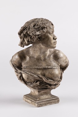 The identity of the Black woman who posed for this sculpture is unknown, but recent scholarship suggests that she might have been born into slavery in the French Antilles and, following her emancipation, migrated to France. Created twenty years after France abolished slavery in 1848, and only three years following emancipation in the United States in 1865, the bust was meant to appeal to the antislavery views of a progressive white audience. Yet despite its sensitive portrayal of an individual, the bust nonetheless objectifies the Black female body as an exoticized other, her single bare breast a symbol of both liberty and colonial fantasy.