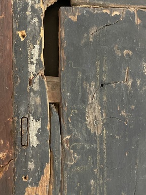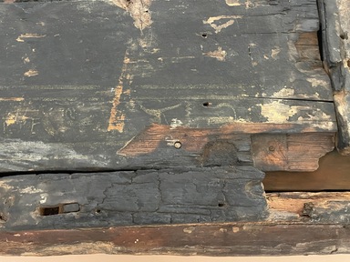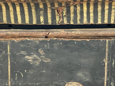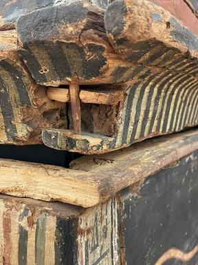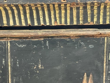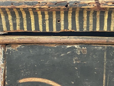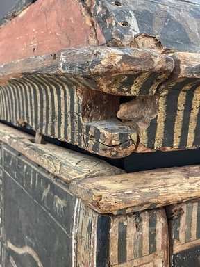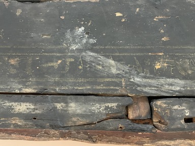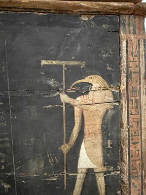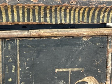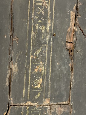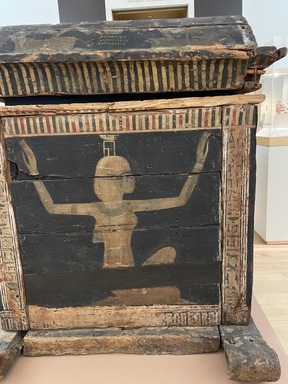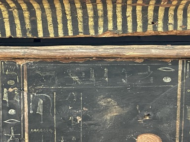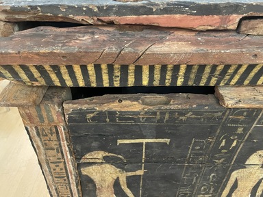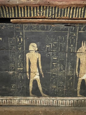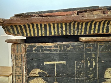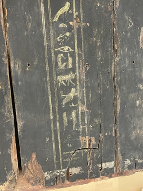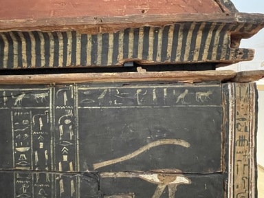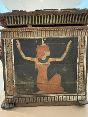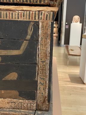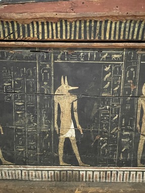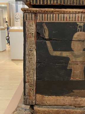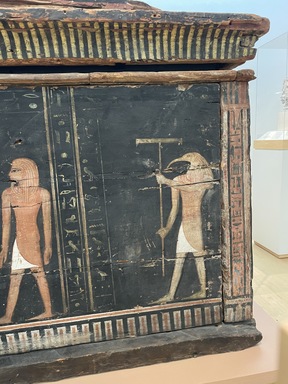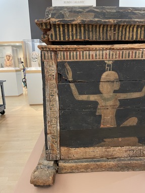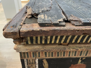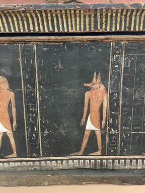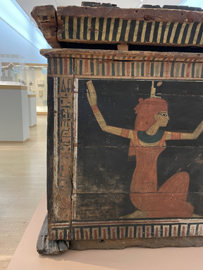 Outer Coffin of Kamwese, ca. 1390–1352 B.C.E. Wood, pigment, 41 3/4 x 35 7/16 x 95 1/4 in. (106 x 90 x 242 cm). Brooklyn Museum, Charles Edwin Wilbour Fund, 37.15E. Creative Commons-BY (Photo: Brooklyn Museum, CUR.37.15E_detail26.JPG)
