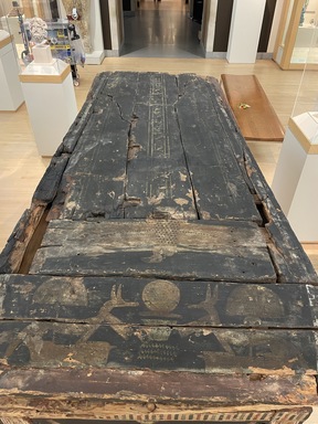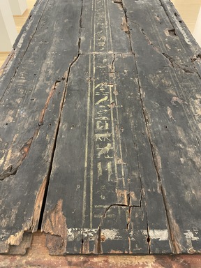 Outer Coffin of Kamwese, ca. 1390–1352 B.C.E. Wood, pigment, 41 3/4 x 35 7/16 x 95 1/4 in. (106 x 90 x 242 cm). Brooklyn Museum, Charles Edwin Wilbour Fund, 37.15E. Creative Commons-BY (Photo: Brooklyn Museum, CUR.37.15E_detail41.JPG)