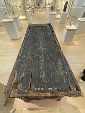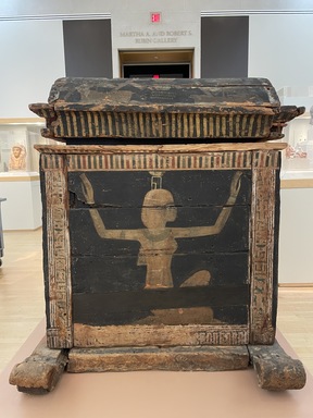 Outer Coffin of Kamwese, ca. 1390–1352 B.C.E. Wood, pigment, 41 3/4 x 35 7/16 x 95 1/4 in. (106 x 90 x 242 cm). Brooklyn Museum, Charles Edwin Wilbour Fund, 37.15E. Creative Commons-BY (Photo: Brooklyn Museum, CUR.37.15E_view2_mummychamber.jpg)