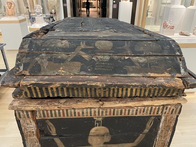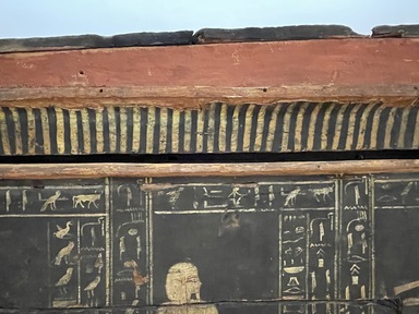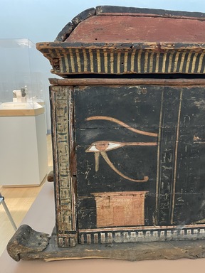 Outer Coffin of Kamwese, ca. 1390–1352 B.C.E. Wood, pigment, 41 3/4 x 35 7/16 x 95 1/4 in. (106 x 90 x 242 cm). Brooklyn Museum, Charles Edwin Wilbour Fund, 37.15E. Creative Commons-BY (Photo: Brooklyn Museum, CUR.37.15E_detail63.JPG)