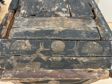 Outer Coffin of Kamwese, ca. 1390–1352 B.C.E. Wood, pigment, 41 3/4 x 35 7/16 x 95 1/4 in. (106 x 90 x 242 cm). Brooklyn Museum, Charles Edwin Wilbour Fund, 37.15E. Creative Commons-BY (Photo: Brooklyn Museum, CUR.37.15E_detail19.JPG)
