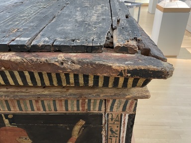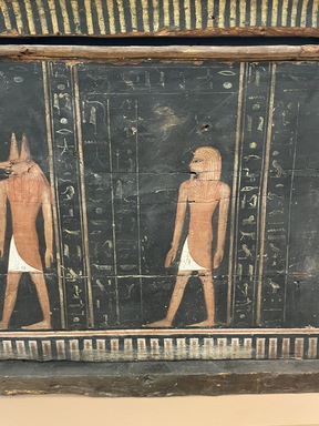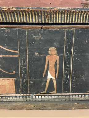 Outer Coffin of Kamwese, ca. 1390–1352 B.C.E. Wood, pigment, 41 3/4 x 35 7/16 x 95 1/4 in. (106 x 90 x 242 cm). Brooklyn Museum, Charles Edwin Wilbour Fund, 37.15E. Creative Commons-BY (Photo: Brooklyn Museum, CUR.37.15E_detail47.JPG)