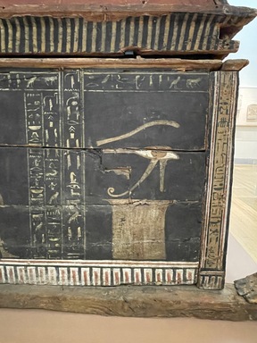 Outer Coffin of Kamwese, ca. 1390–1352 B.C.E. Wood, pigment, 41 3/4 x 35 7/16 x 95 1/4 in. (106 x 90 x 242 cm). Brooklyn Museum, Charles Edwin Wilbour Fund, 37.15E. Creative Commons-BY (Photo: Brooklyn Museum, CUR.37.15E_detail21.JPG)
