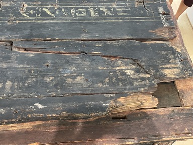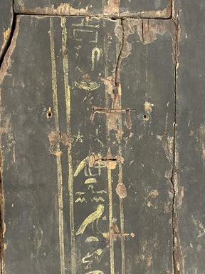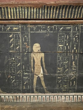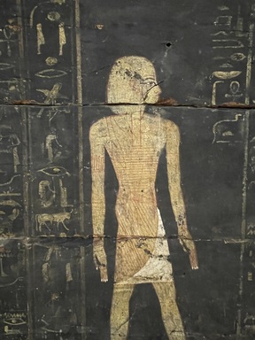 Outer Coffin of Kamwese, ca. 1390–1352 B.C.E. Wood, pigment, 41 3/4 x 35 7/16 x 95 1/4 in. (106 x 90 x 242 cm). Brooklyn Museum, Charles Edwin Wilbour Fund, 37.15E. Creative Commons-BY (Photo: Brooklyn Museum, CUR.37.15E_detail62.JPG)