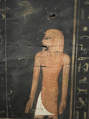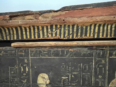 Outer Coffin of Kamwese, ca. 1390–1352 B.C.E. Wood, pigment, 41 3/4 x 35 7/16 x 95 1/4 in. (106 x 90 x 242 cm). Brooklyn Museum, Charles Edwin Wilbour Fund, 37.15E. Creative Commons-BY (Photo: Brooklyn Museum, CUR.37.15E_detail18.JPG)
