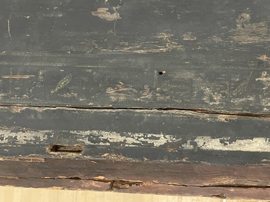 Outer Coffin of Kamwese, ca. 1390–1352 B.C.E. Wood, pigment, 41 3/4 x 35 7/16 x 95 1/4 in. (106 x 90 x 242 cm). Brooklyn Museum, Charles Edwin Wilbour Fund, 37.15E. Creative Commons-BY (Photo: Brooklyn Museum, CUR.37.15E_detail53.JPG)